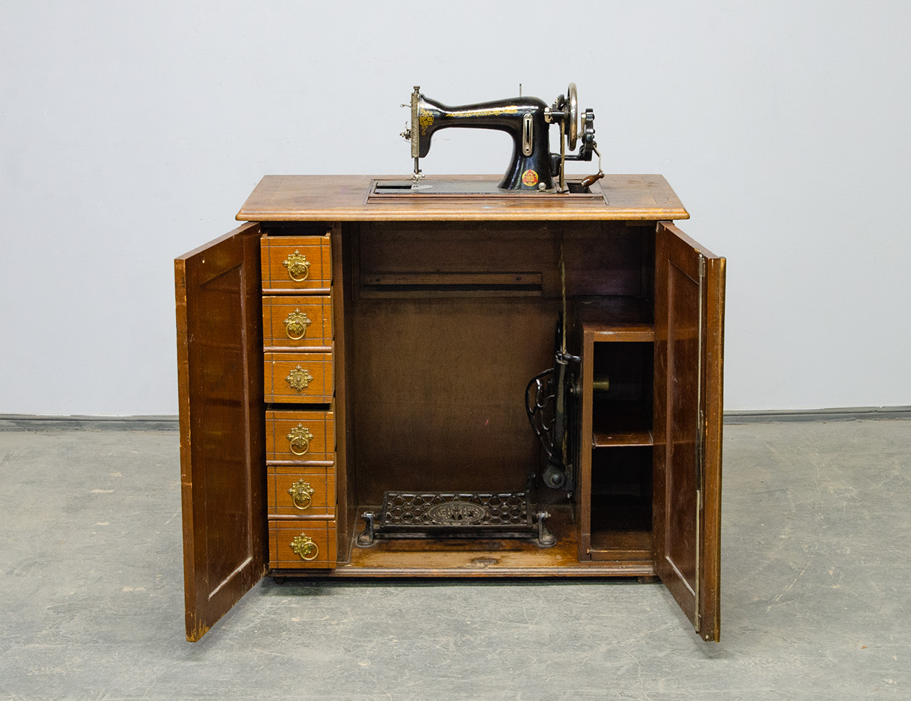 Антикварная швейная машинка в тумбе