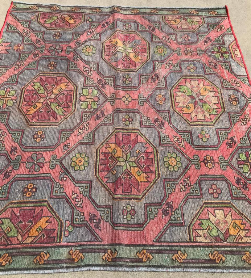 Винтажный восточный односторонний безворсовый ковер ручной работы
