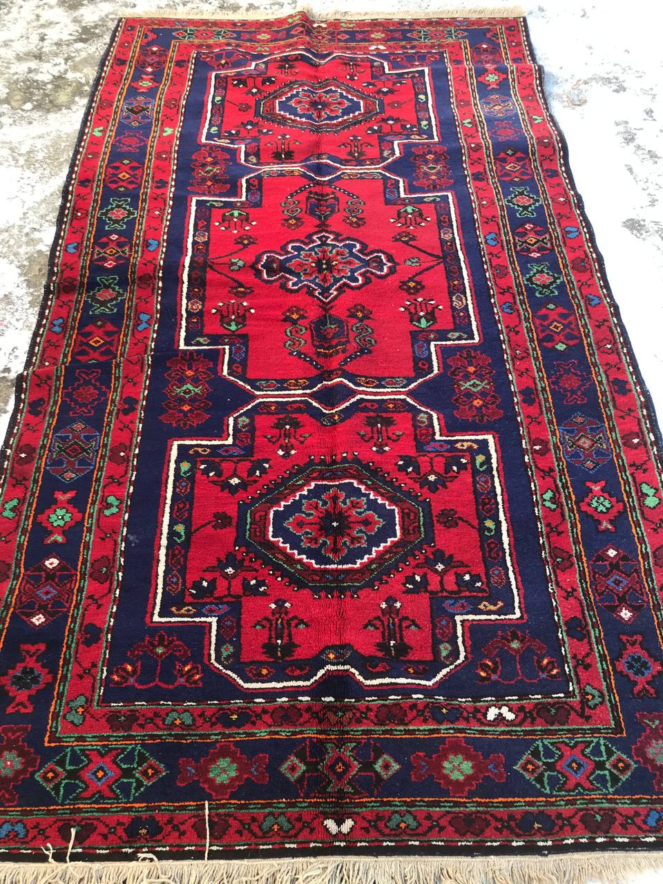 Винтажный восточный односторонний ворсовый ковер ручной работы