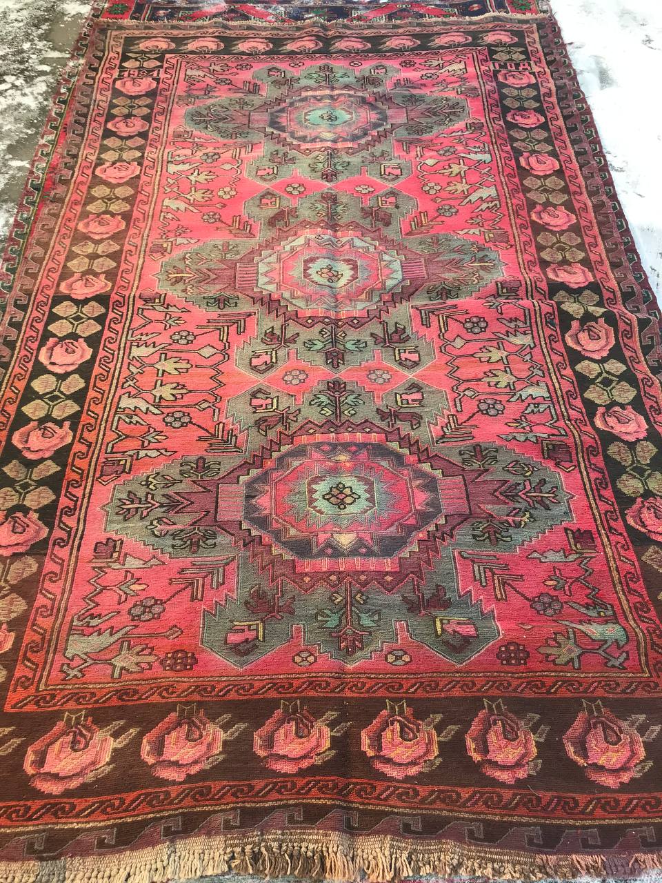Винтажный восточный односторонний безворсовый ковер ручной работы