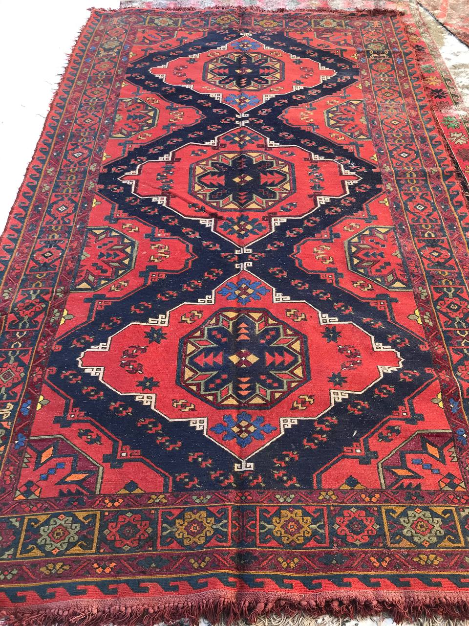 Винтажный восточный односторонний безворсовый ковер ручной работы
