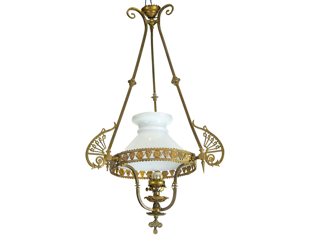 Старинная бронзовая люстра на 3 рожка