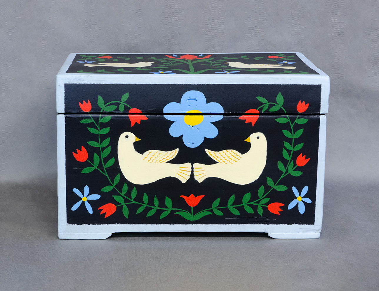 Старинный сундук с росписью Цветы и Птицы